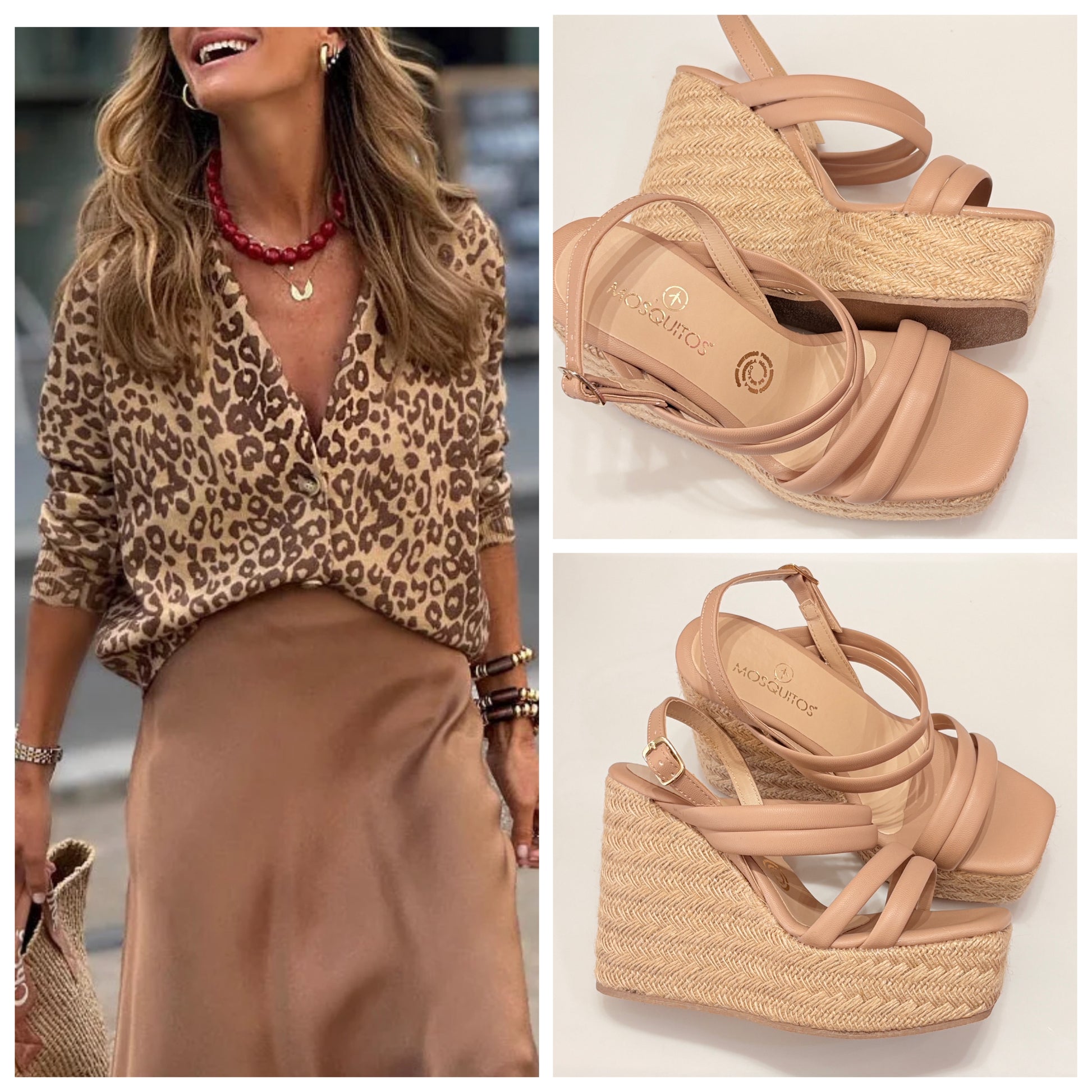 Alpargata yute de plataforma corrida, cómoda con pulsera al tobillo ajustable y tiras color nude