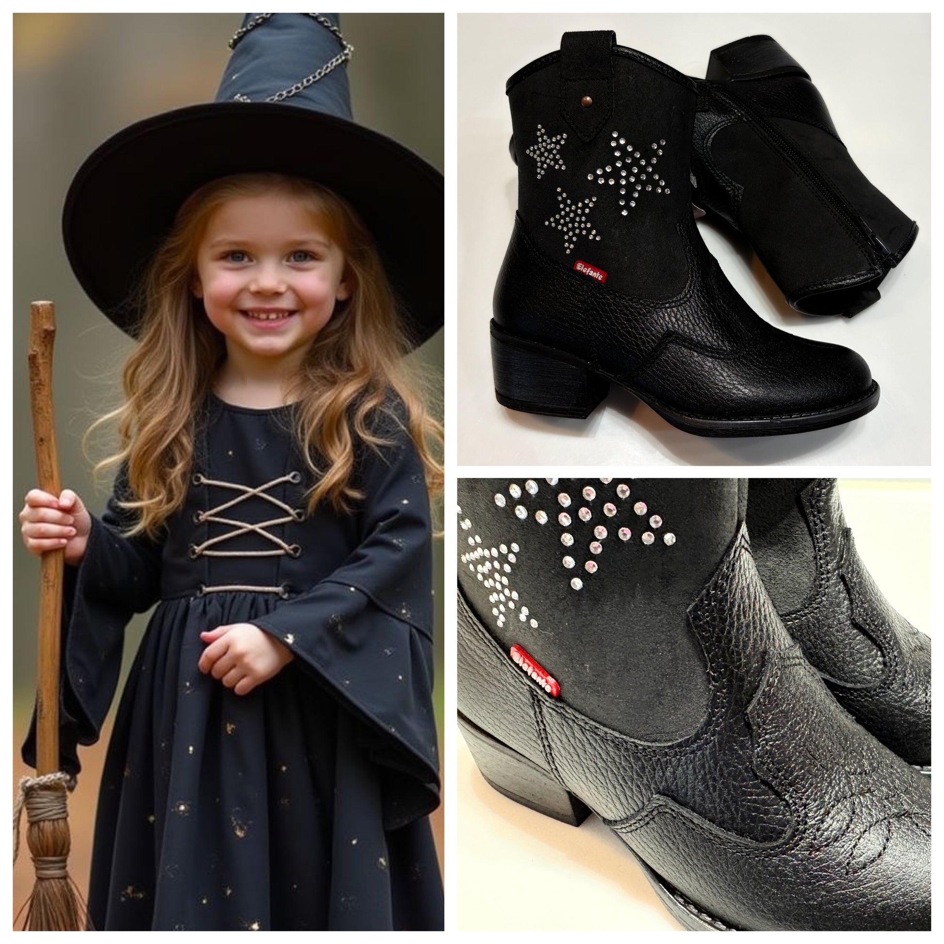 BOTA VAQUERA NIÑA 13824 ELEFANTE PIEL NEGRA ESTRELLAS
