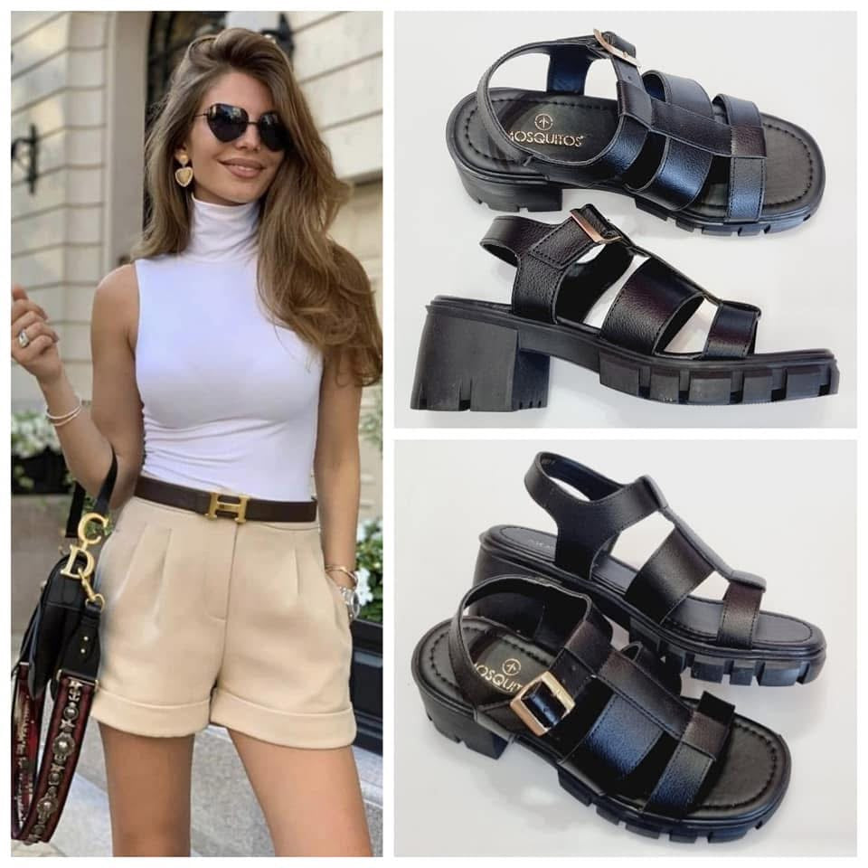 SANDALIA VINTAGE CON TACON MOSQUITOS 2101 NEGRO